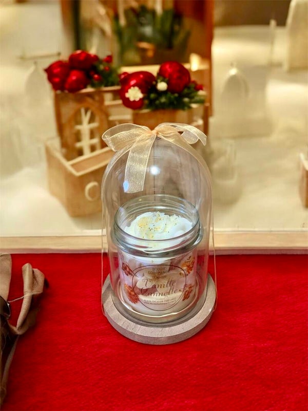 Présentée sous une cloche en verre élégante, chaque bougie devient un véritable objet décoratif :élégantes, lumineuses et parfumées selon vos envies.